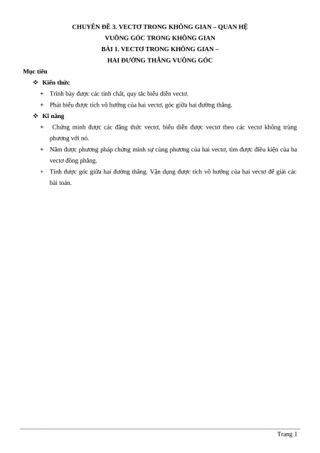 BÀI 1. VECTƠ TRONG KHÔNG GIAN –