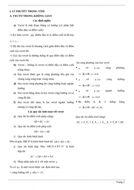 A. VECTƠ TRONG KHÔNG GIAN Các định nghĩa