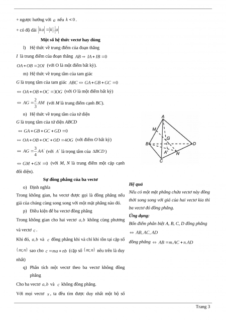 p) Điều kiện để ba vectơ đồng phẳng Ứng dụng: