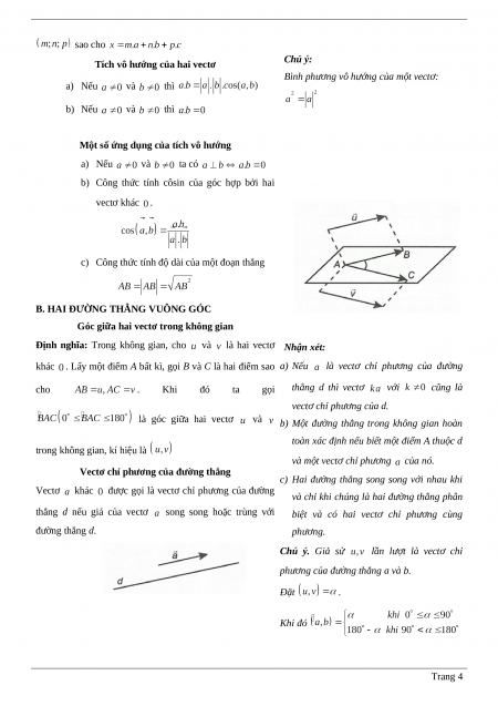 phương của đường thẳng a và b. Đặt . Khi đó Trang 4