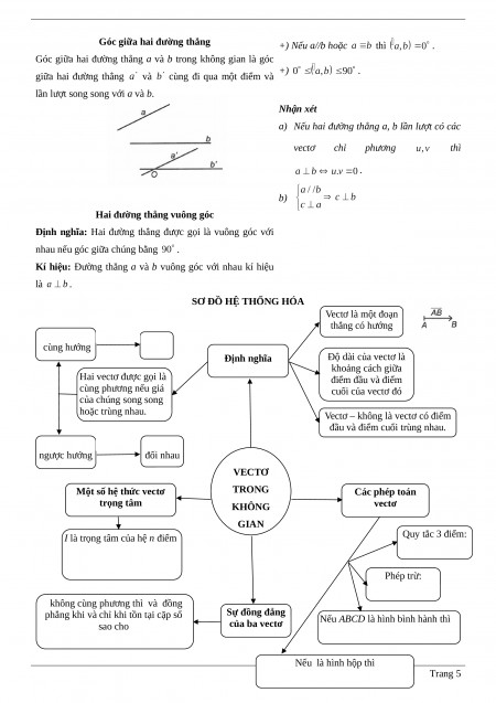 + Phát biểu được tích vô hướng của hai vectơ, góc giữa hai đường thẳng. Kĩ năng