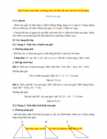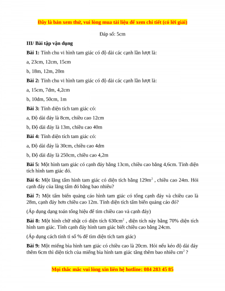 Chuyên đề Hình tam giác Toán 5 năm 2023