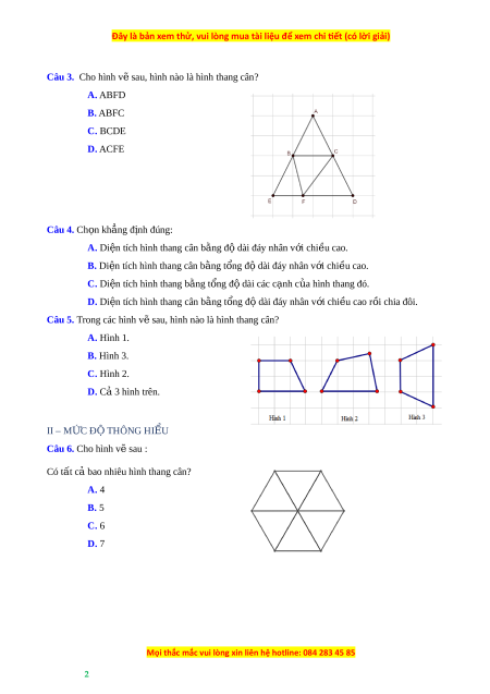 ẽ au, hình nào là hình thang cân? A. Hình 1. B. Hình 3. C. Hình 2. D. Cả 3 hình trên. II – M C Đ Ứ Ộ THÔNG HI U Ể Câu 6. Cho hình v s ẽ au :