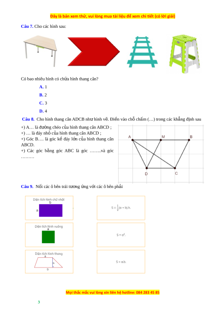 Câu 3. Cho hình v sau, ẽ hình nào là hình thang cân?