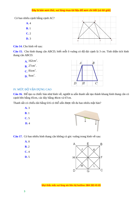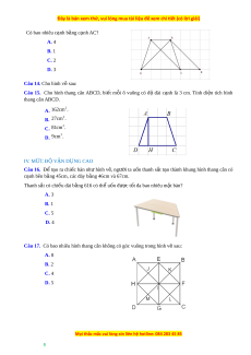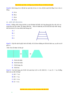 i hai cạnh đáy là 6cm và 12cm, đ dà ộ i c nh bê ạ n b ng 7c ằ m có chu vi bằng: A. 32cm B. 20cm C. 26cm D. 25cm III – M C Đ Ứ Ộ V N Ậ D N Ụ G Câu 11. Nh ng c ữ hiếc thang t t ừ h i ờ xa x a ư đã đư c ợ bi t ế đ n v ế i ớ công d ng gi ụ úp làm vi c ệ trên cao trong lĩnh v c ự làm vư n, xâ ờ y d ng, ự đi n l ệ c ự … Hình v d ẽ ư i ớ đây mô t hì ả nh nh m ả t ộ chi c ế thang. H i ỏ trên hình v c