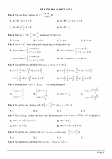 Chuyên đề kiểm tra học kì 1 môn Toán 11 năm 2023 có đáp án - Đề 15 phút