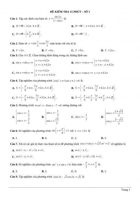 Câu 9. Tập nghiệm của phương trình là Trang 1 A. . B. . C. . D. .
