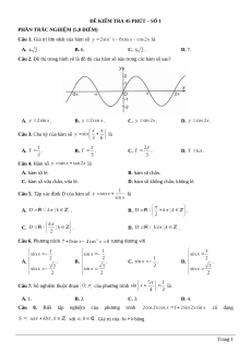 Câu 3. Chu kỳ của hàm số là A. . B. . C. . D. . Câu 4. Hàm số là A. hàm số lẻ. B. hàm số chẵn.