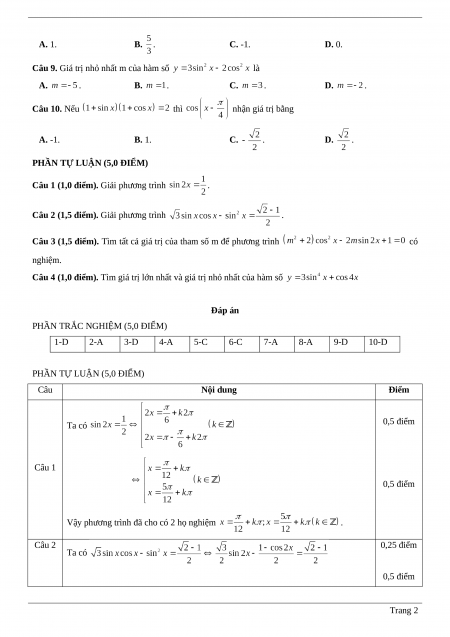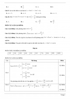 Câu 4 (1,0 điểm). Tìm giá trị lớn nhất và giá trị nhỏ nhất của hàm số Đáp án