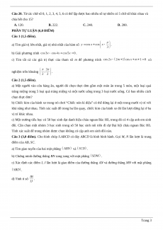 mỗi phần thưởng là hai quyển sách khác loại? A. cách. B. cách. C. cách. D. cách. Câu 12. Hàm số