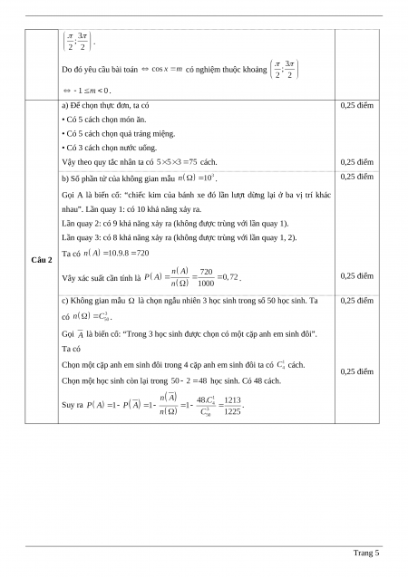 c) Tìm tất cả các giá trị thực của tham số m để phương trình có nghiệm trên khoảng . Câu 2 (1,5 điểm).