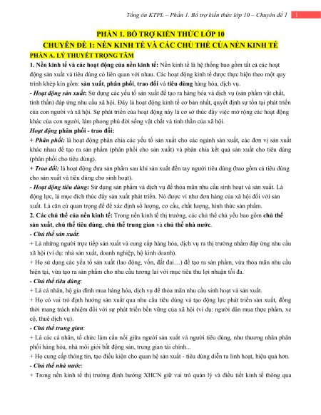 Tổng ôn KTPL – Phần 1. Bổ trợ kiến thức lớp 10 – Chuyên đề 1 1