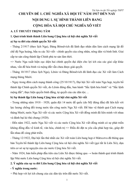 CHUYÊN ĐỀ 1. CHỦ NGHĨA XÃ HỘI TỪ NĂM 1917 ĐẾN NAY
