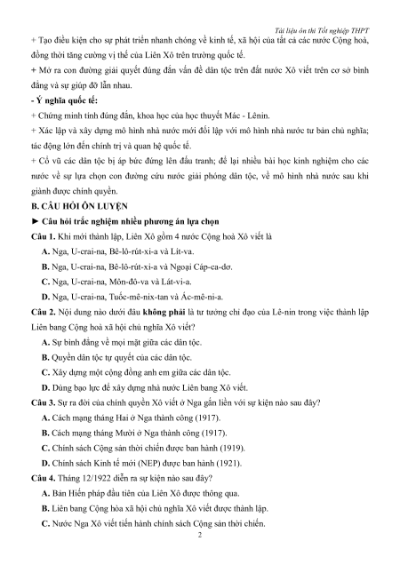 giành được chính quyền. B. CÂU HỎI ÔN LUYỆN
