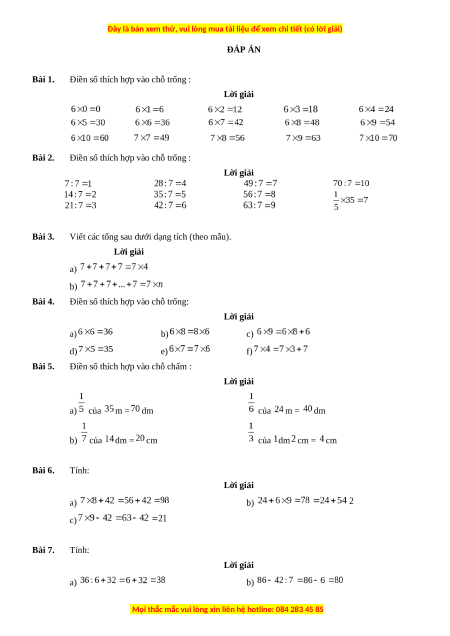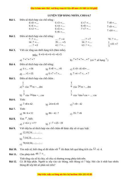 Chuyên đề Luyện tập bảng nhân chia 6, 7 Toán lớp 3 nâng cao Cánh diều
