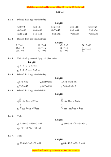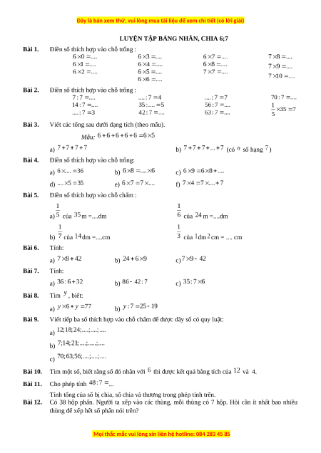 Chuyên đề Luyện tập bảng nhân chia 6, 7 Toán lớp 3 nâng cao Chân trời sáng tạo