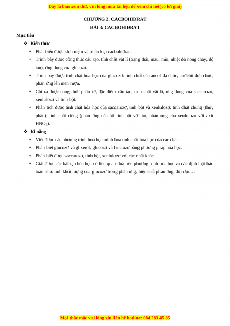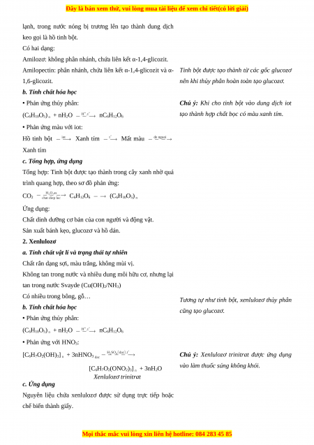 phân), tính chất riêng (phản ứng của hồ tinh bột với iot, phản ứng của xenlulozơ với axit HNO3). Kĩ năng
