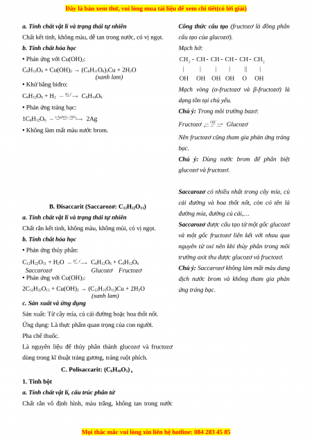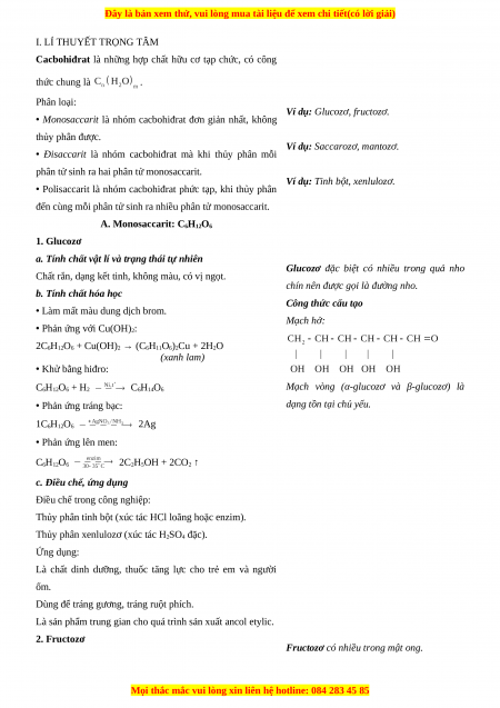 Chuyên đề luyện thi Hóa học 12 năm 2023 cực hay - Phần 2: Cacbohiđrat