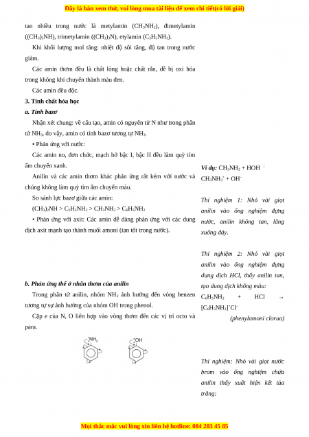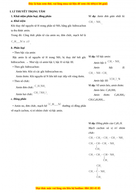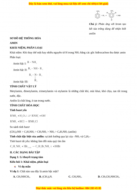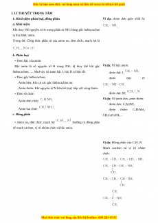 Chuyên đề luyện thi Hóa học 12 năm 2023 cực hay - Phần 3: Amin