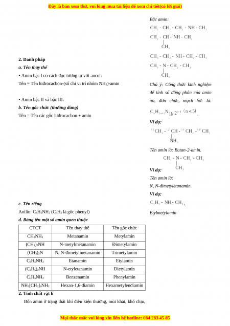 + Biết được khái niệm, phân loại, gọi tên amin.