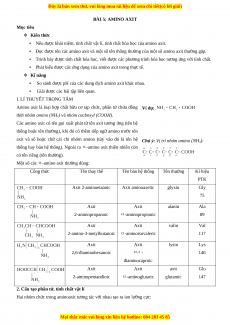 + Đọc được tên các amino axit và một số tên thông thường của một số amino axit thường gặp.