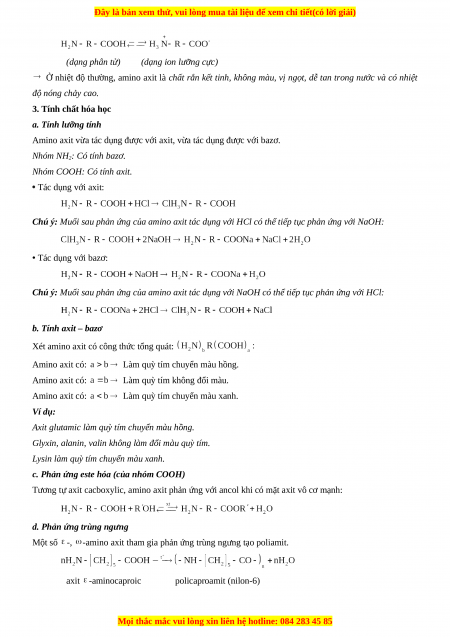 chứa đồng thời nhóm amino (NH ) và nhóm cacboxyl 2 (COOH).