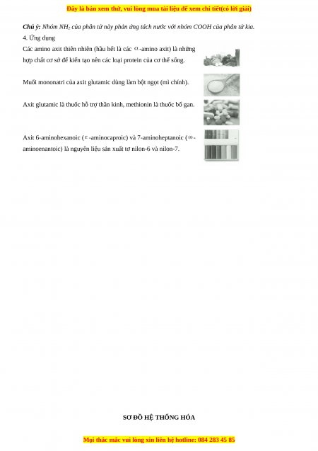 Chú ý: Nhóm NH2 của phân tử này phản ứng tách nước với nhóm COOH của phân tử kia. 4. Ứng dụng
