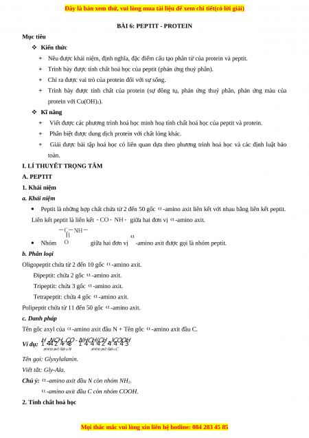 I. LÍ THUYẾT TRỌNG TÂM A. PEPTIT 1. Khái niệm a. Khái niệm