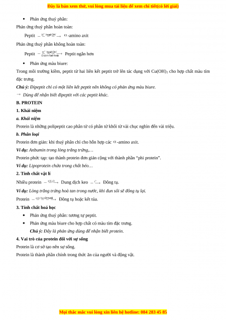 Dùng để nhận biết đipeptit với các peptit khác. B. PROTEIN 1. Khái niệm a. Khái niệm
