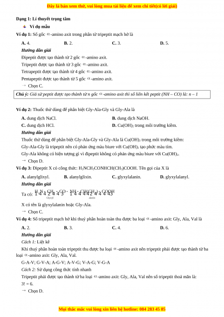 Chú ý: Đipeptit chỉ có một liên kết peptit nên không có phản ứng màu biure.
