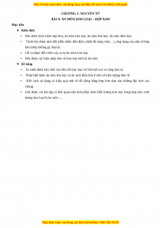 + Nêu được khái niệm hợp kim, ăn mòn kim loại, ăn mòn hóa học, ăn mòn điện hóa.