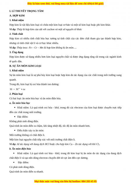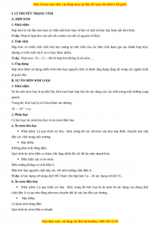 I. LÍ THUYẾT TRỌNG TÂM A. HỢP KIM 1. Khái niệm