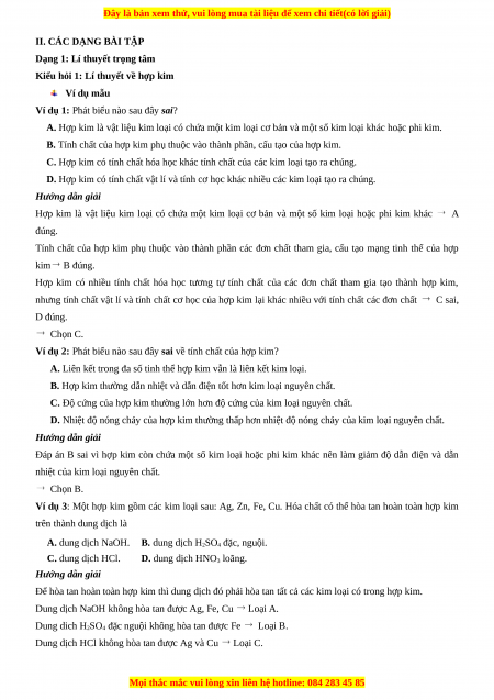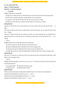 Kiểu hỏi 1: Lí thuyết về hợp kim Ví dụ mẫu