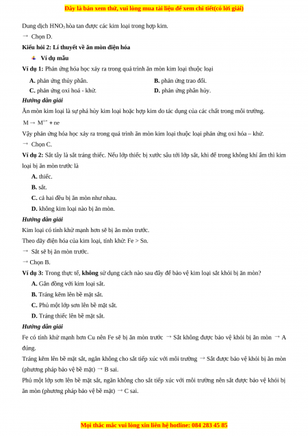Chuyên đề luyện thi Hóa học 12 năm 2023 cực hay - Phần 5: Ăn mòn kim loại - hợp kim