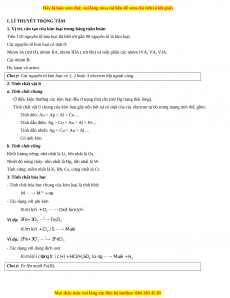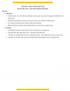 ĐẠI CƯƠNG KIM LOẠI (có 1, 2 hoặc 3 e ở lớp ngoài cùng)