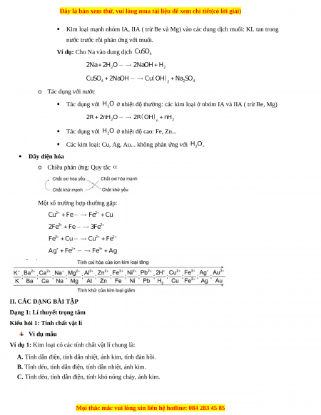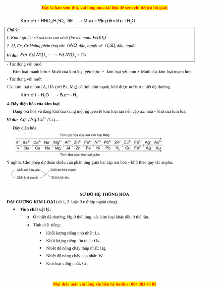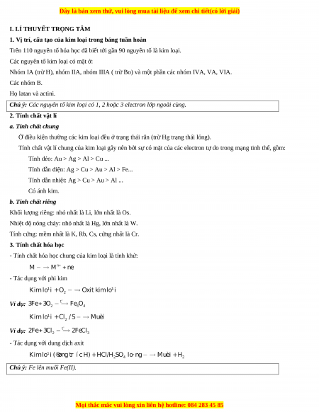 Chuyên đề luyện thi Hóa học 12 năm 2023 cực hay - Phần 5: Đại Cương Về Kim Loại