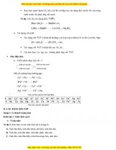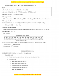 + Viết được các phương trình hóa học của phản ứng oxi hóa – khử chứng minh tính chất của kim loại.