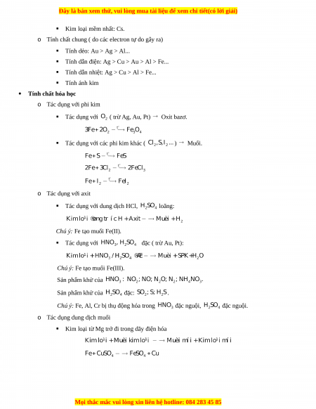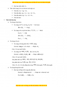 Chú ý: Fe tạo muối Fe(II). Tác dụng với đặc ( trừ Au, Pt):