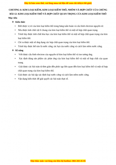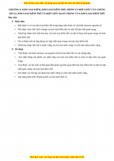 CHƯƠNG 6: KIM LOẠI KIỀM, KIM LOẠI KIỀM THỔ, NHÔM VÀ HỢP CHẤT CỦA CHÚNG