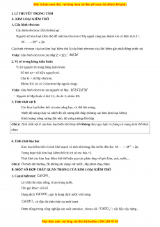 A. KIM LOẠI KIỀM THỔ 1. Cấu hình electron