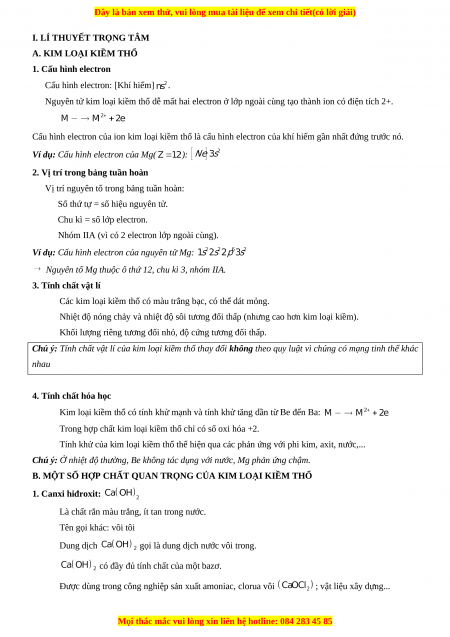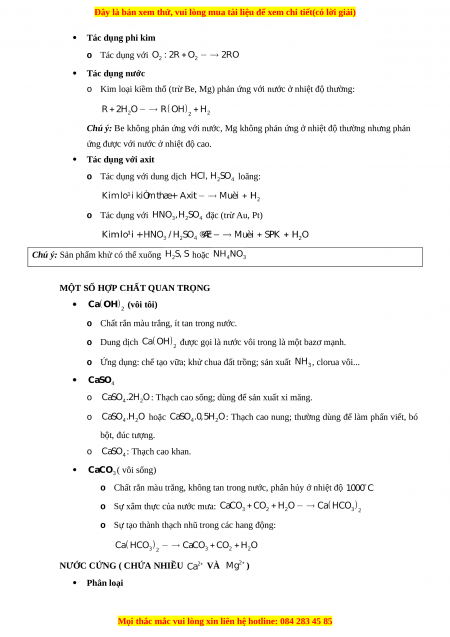 Chuyên đề luyện thi Hóa học 12 năm 2023 cực hay - Phần 6: Kim Loại Kiềm Thổ