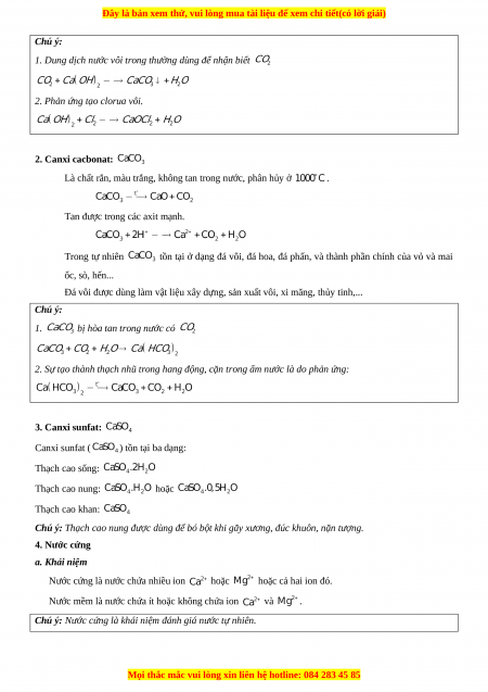 Chú ý: Nước cứng là khái niệm đánh giá nước tự nhiên.