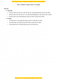 + Trình bày được tính chất vật lí, tính chất hóa học và phương pháp điều chế kim loại nhôm.