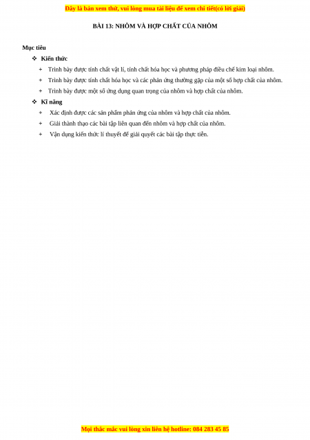 + Giải thành thạo các bài tập liên quan đến nhôm và hợp chất của nhôm.