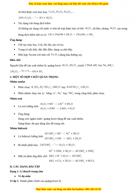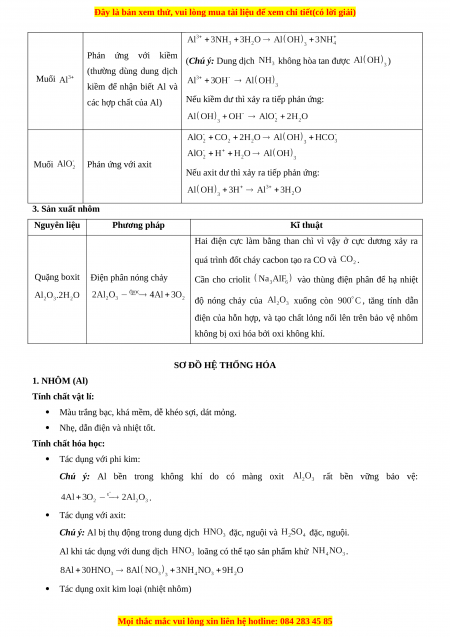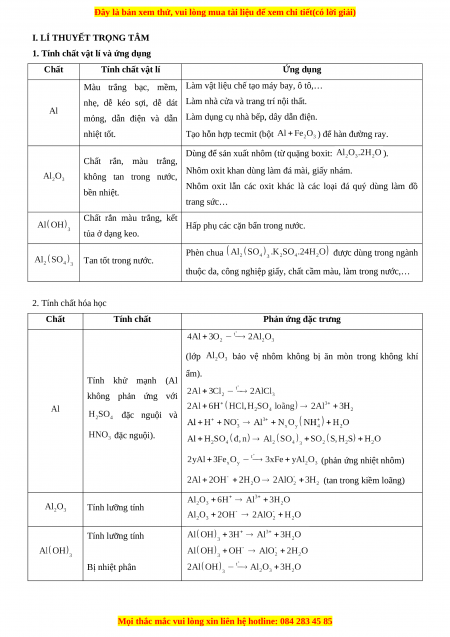 Chuyên đề luyện thi Hóa học 12 năm 2023 cực hay - Phần 6: Nhôm