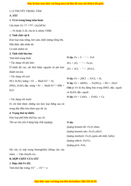 I. LÍ THUYẾT TRỌNG TÂM A. SẮT