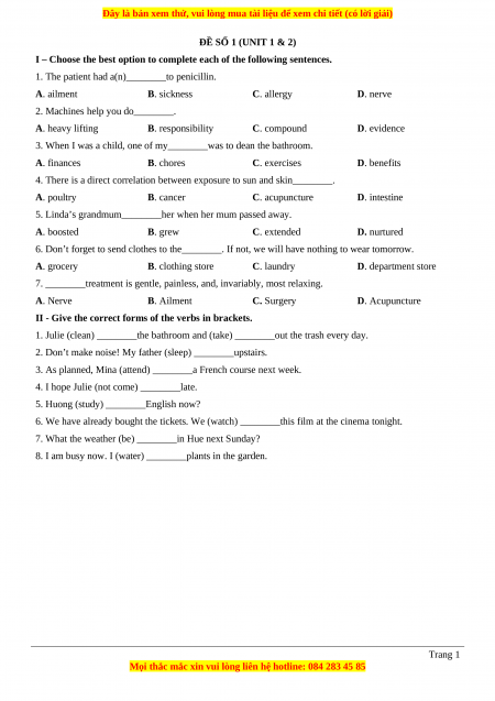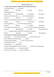 ĐỀ SỐ 1 (UNIT 1 & 2)
