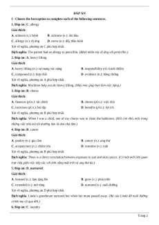C. allergy (n.): dị ứng D. nerve (n.): dây thần kinh