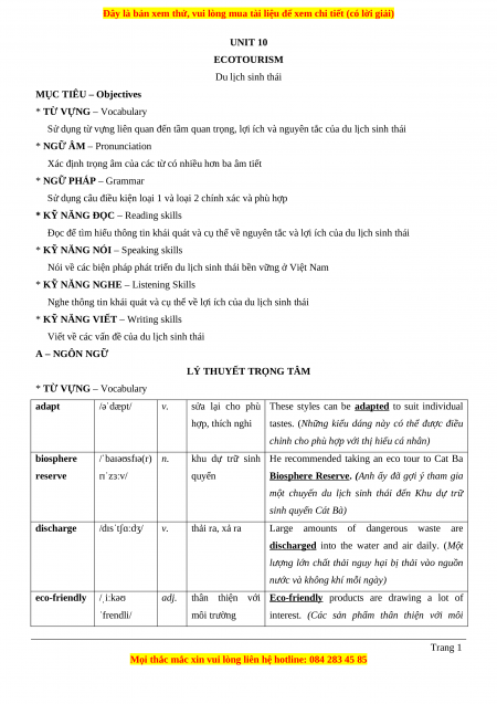 UNIT 10 ECOTOURISM Du lịch sinh thái