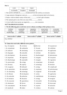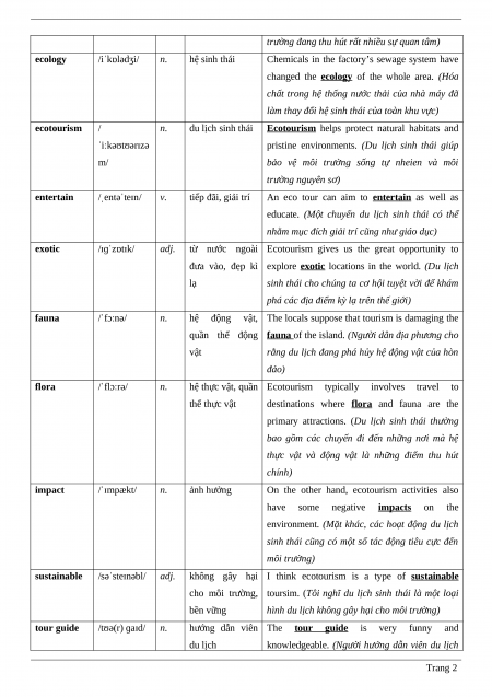 Một số từ nhiều âm tiết có thể có trọng âm phụ ecotourism /ˈiːkəʊtʊərɪzəm/ n. (du lịch sinh thái)
